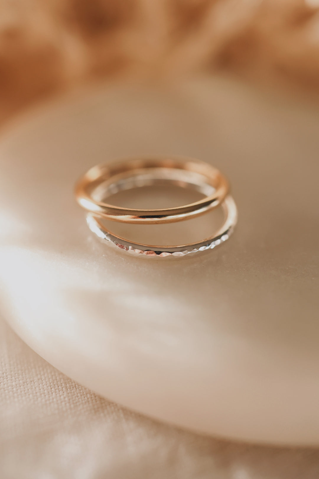 Wear these pretty little things on their own, a stack of bands, or layered with your stone rings.