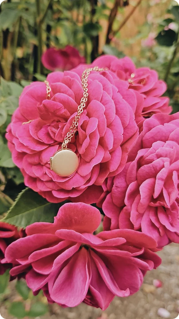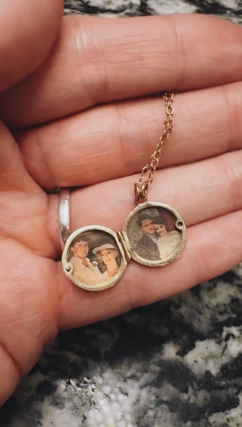 This is the first and only locket where your pictures become part of the metal itself. We developed our own handmade process where the solid gold or silver metal actually shines through your photos, making it look like the heirloom that it is. Holding your memories - permanent, protected, and always close.