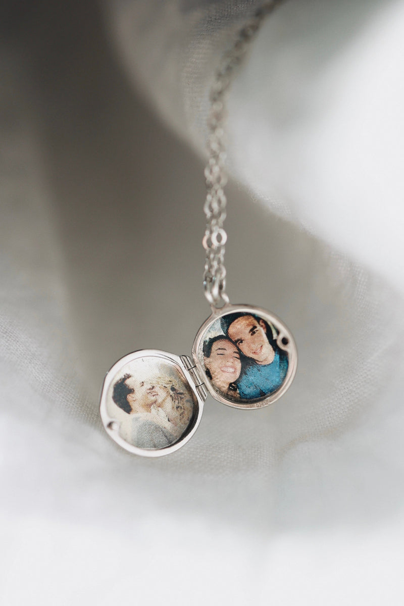 This is a classic style of locket - two photos inside with a hinge to open and close the locket.